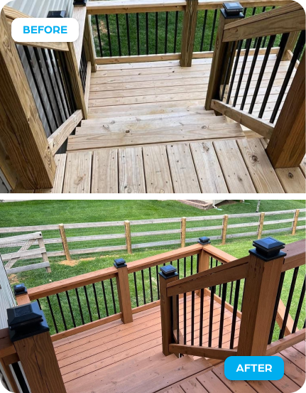 Rain, sun, snow, and humidity will destroy unprotected wood in a few seasons. We clean, prep, and stain your deck, fence, or patio with products that soak deep into the grain and lock out moisture. Proper prep work is the difference between a stain that lasts five years and one that peels in six months.
