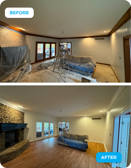 Our team will help protect your furniture and belongings before starting the project. While we handle most preparation tasks, we may recommend moving smaller or valuable items in advance to ensure everything stays safe during the process.