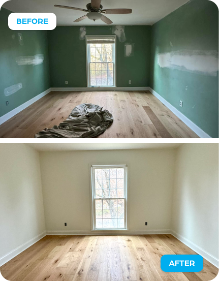 Walls take a beating. Kids, pets, cooking smoke, daily life. We prep every surface so the new paint bonds right and holds up for years. We work around your schedule, cover your furniture, and leave your home cleaner than we found it. No shortcuts, no mess.